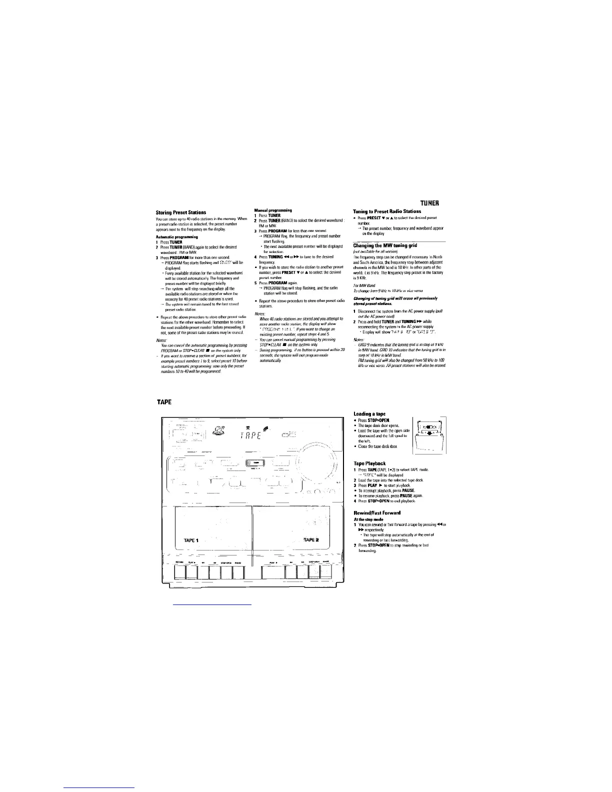 Philips FW380C - Using the System Tuner; Tuning and Storing Radio Stations; Tape Loading and Playback