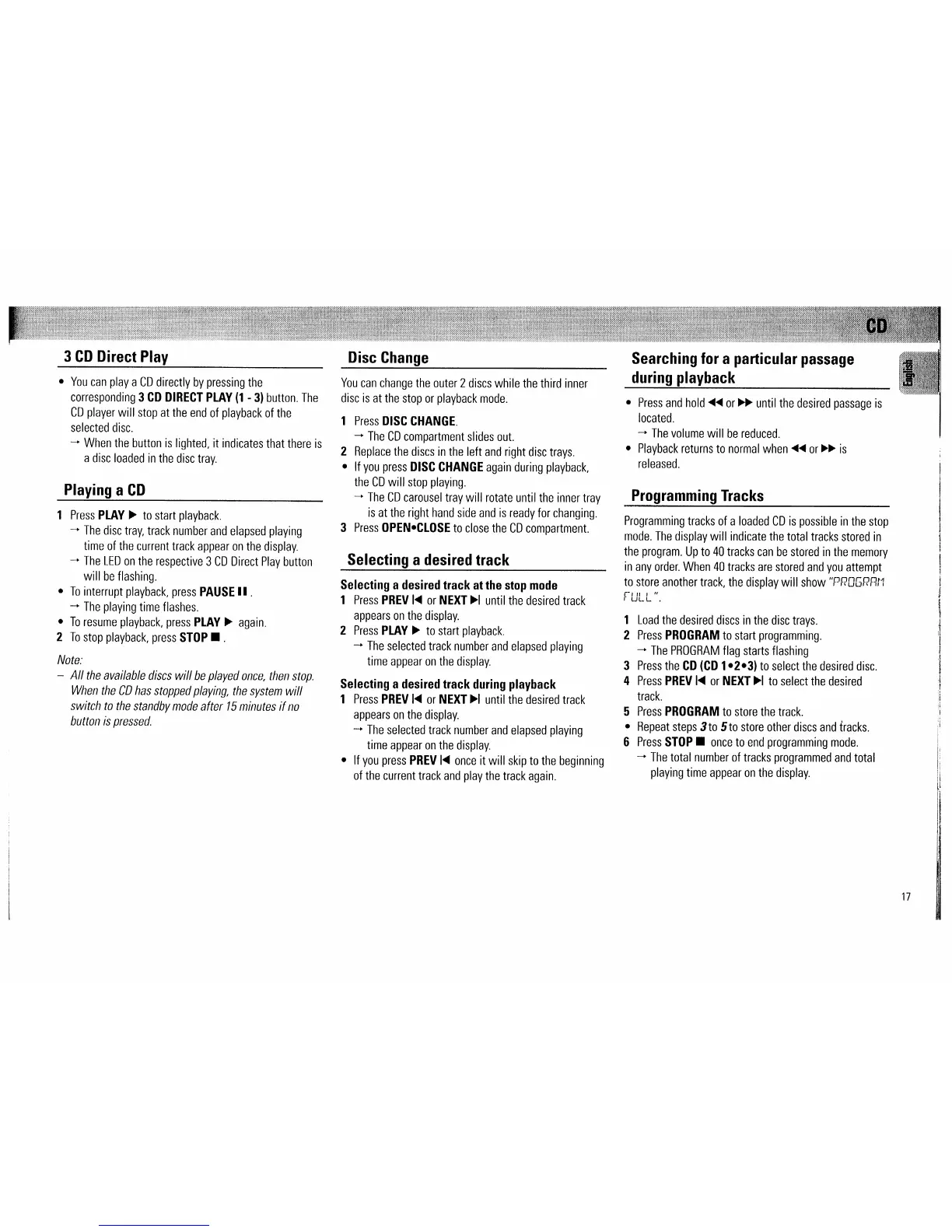 Philips FW520C - CD Playback Features; Direct CD Playback and Basic Playback; Disc and Track Selection; Track Programming