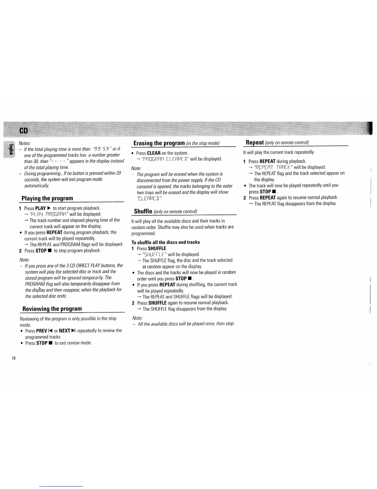Philips FW520C - Advanced CD Playback Modes; Program Playback, Review, and Erase; Shuffle and Repeat Playback