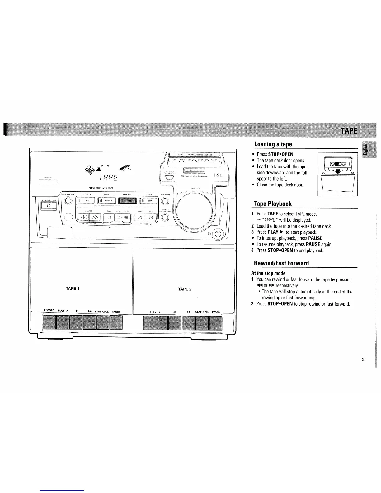 Philips FW520C - Cassette Tape Operation; Inserting and Playing Cassettes; Tape Rewinding and Fast Forwarding