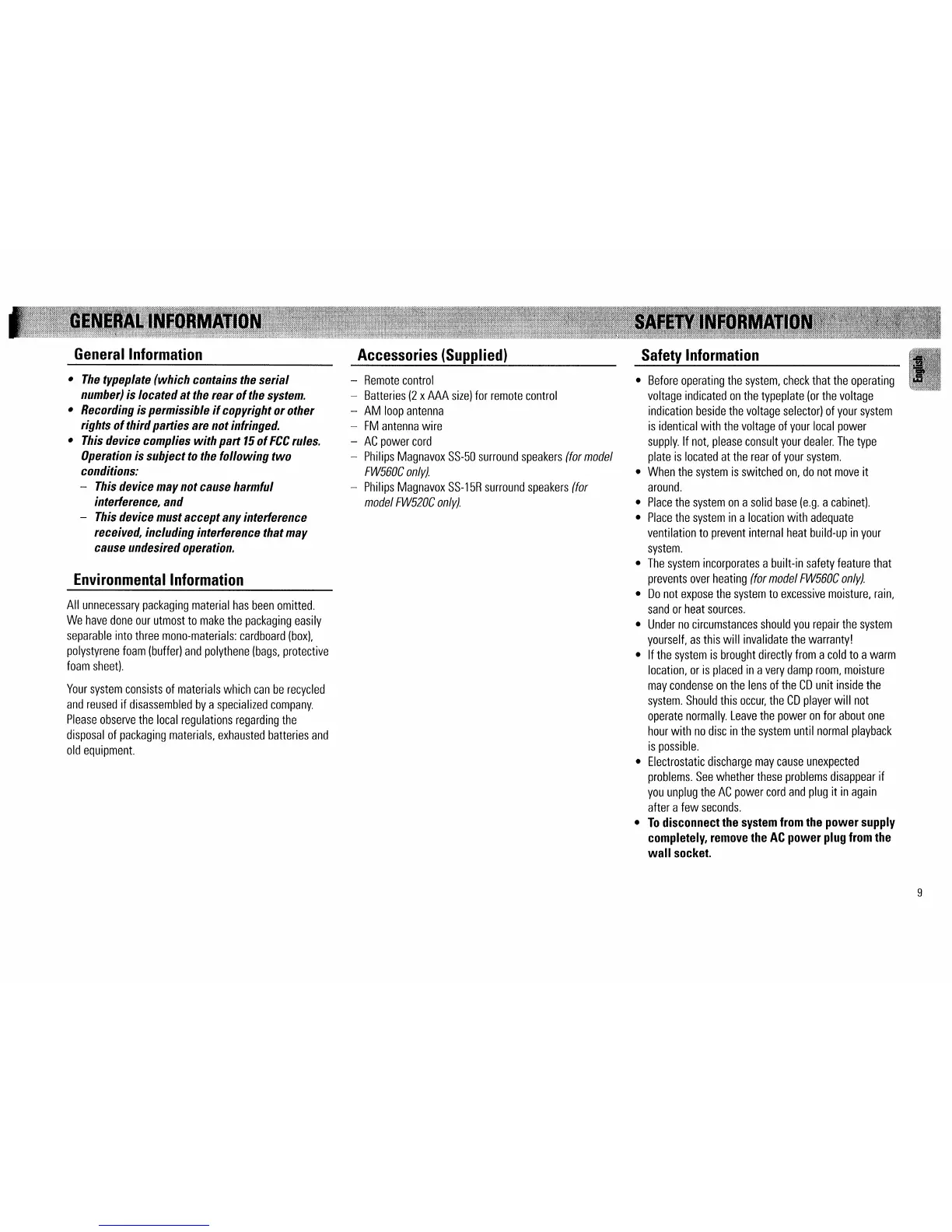 Philips FW520C - System Overview and Safety; General Information and Accessories; Pre-Operation Safety Checks