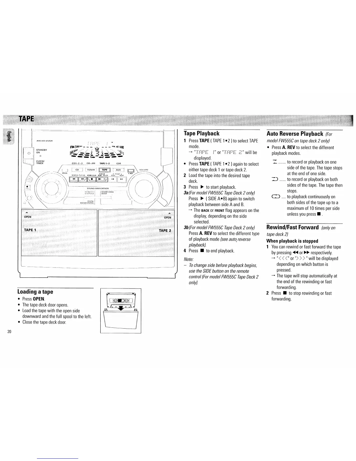 Philips FW545C - Tape Deck Operations; Tape Playback Modes