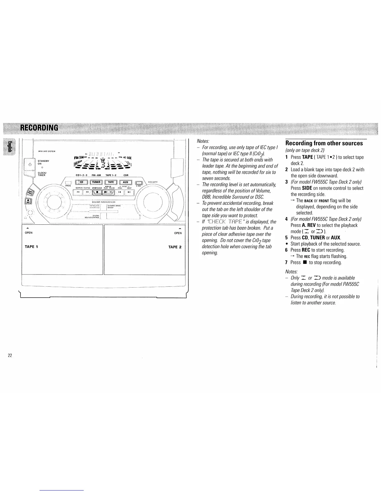 Philips FW545C - Recording Operations; Recording Setup and Notes; Recording from Other Sources