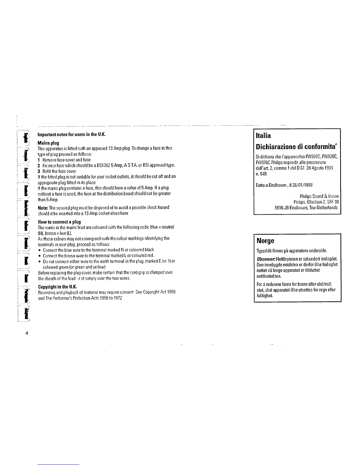 Philips FW570C/22 - Important UK User Notes; Mains Plug Safety; Connecting the Power Plug; UK Copyright Information