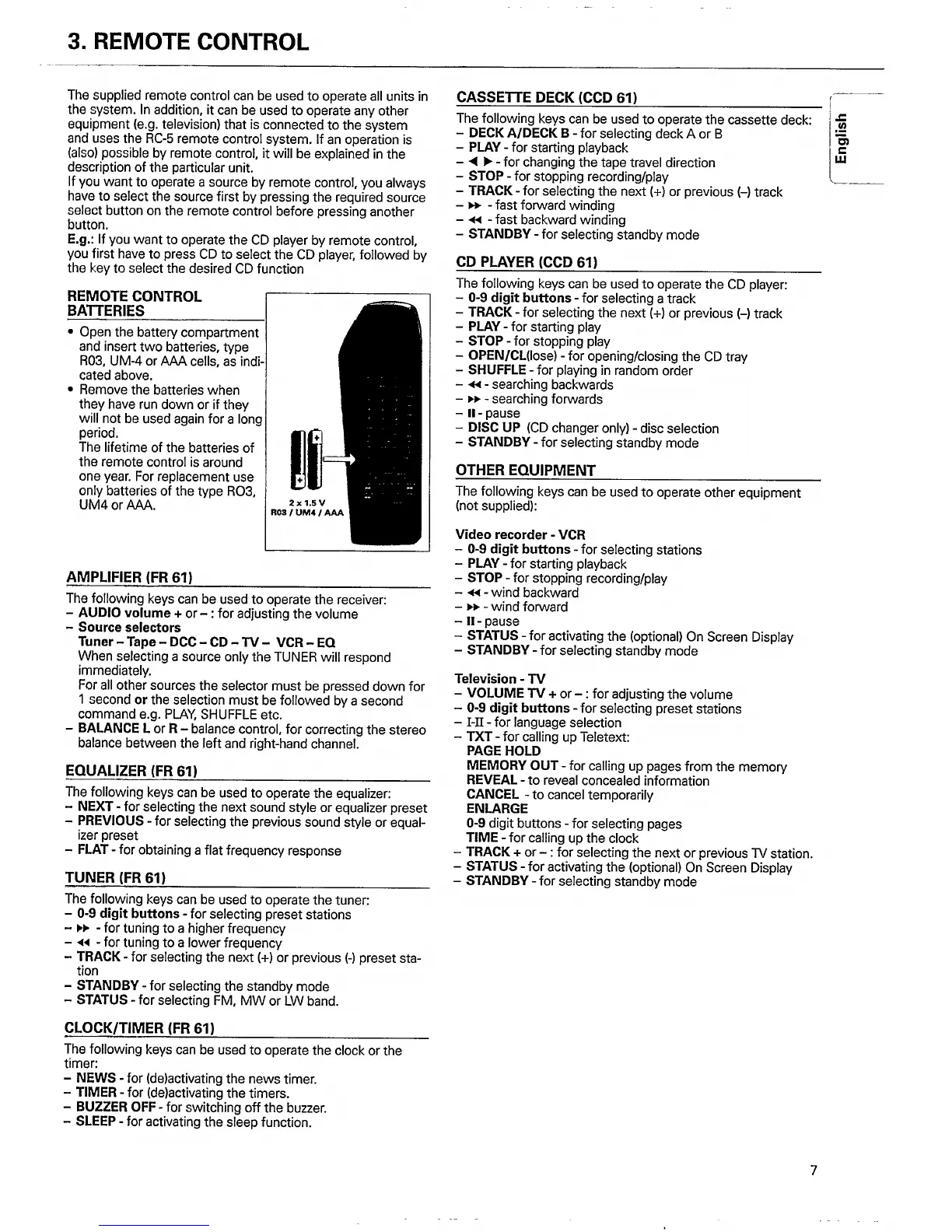 Philips FW61/22 - Remote Control Operations; Amplifier Controls; Cassette Deck Controls; CD Player Controls