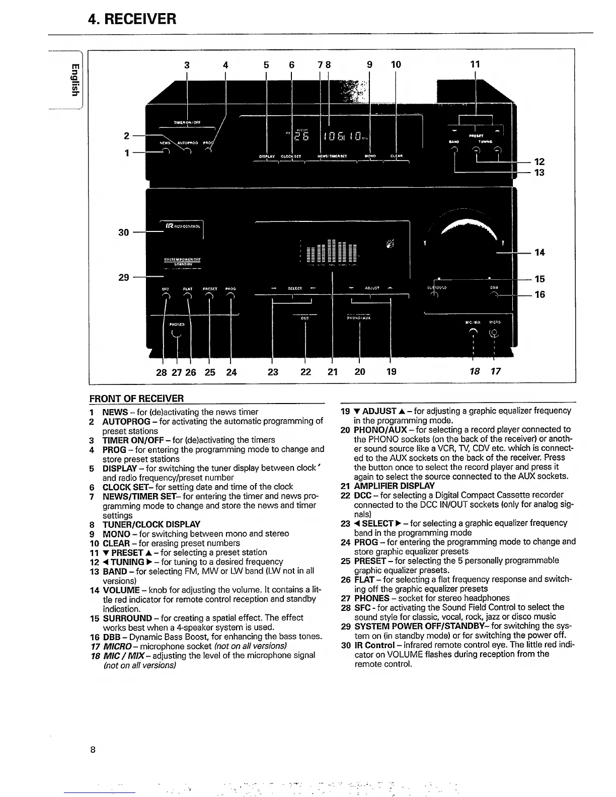 Philips FW61/22 - Receiver Overview; Front Panel Controls