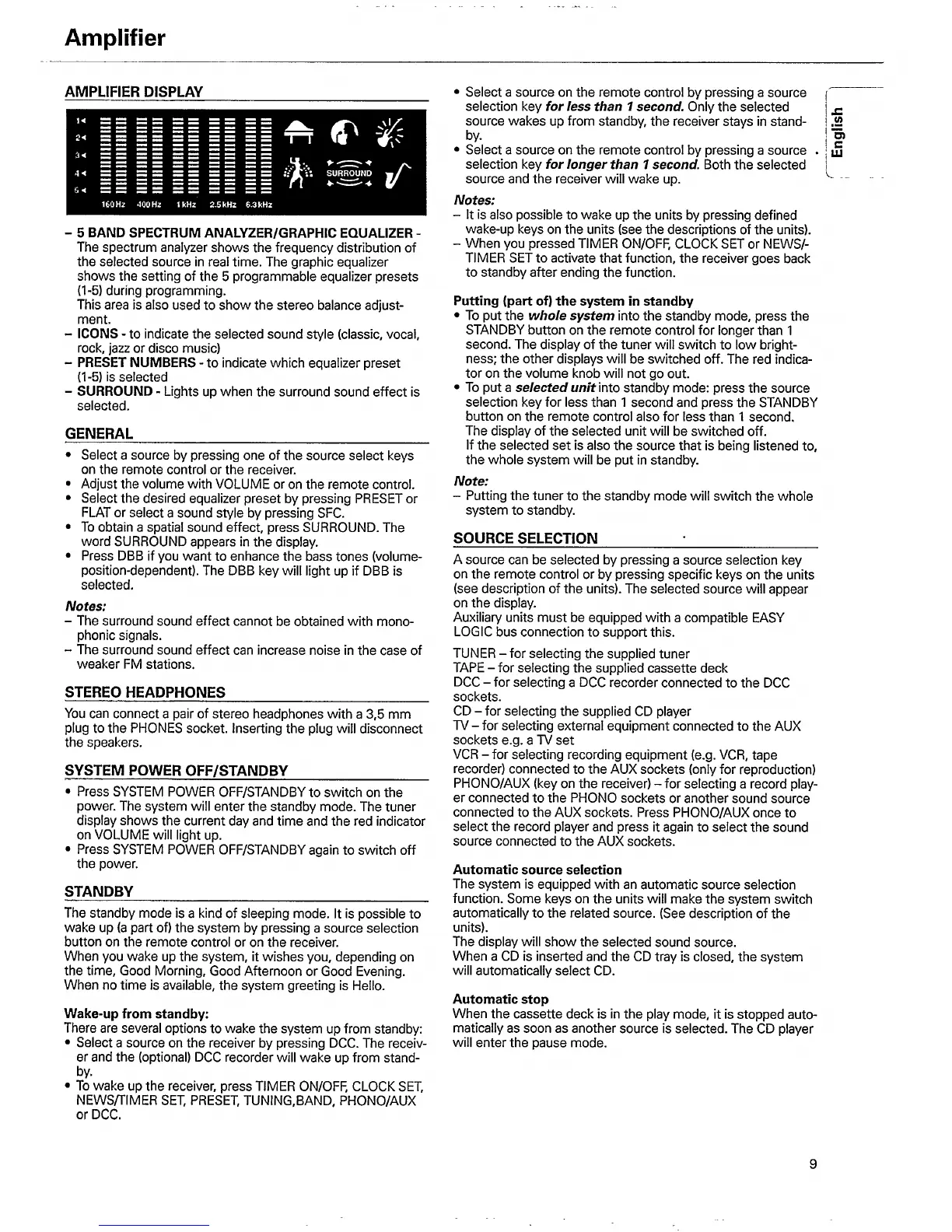 Philips FW61/22 - Amplifier Functions; General Amplifier Operation; Power and Standby Modes; Source Selection
