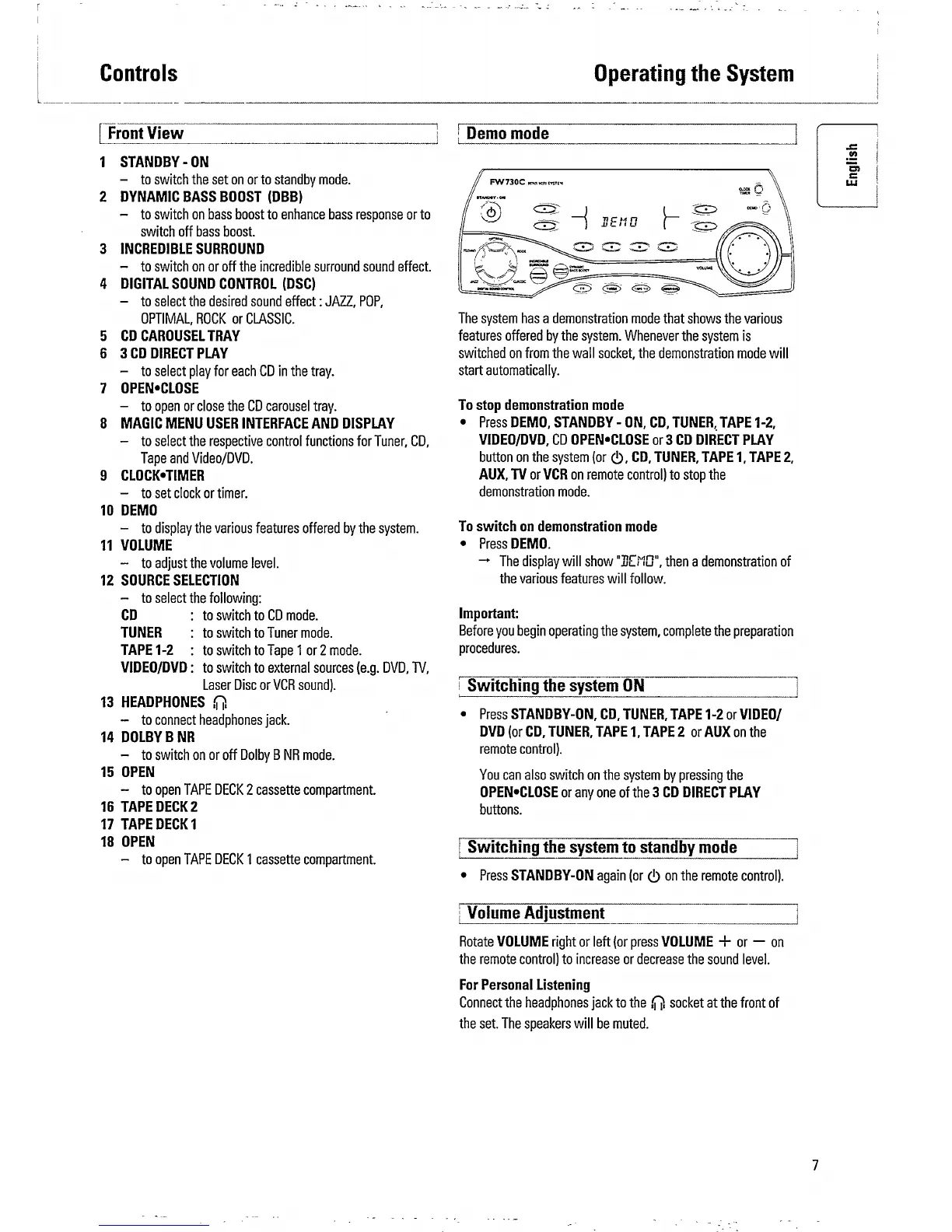 Philips FW730C/25 - Operating the System; Switching the system ON; Switching the system to standby mode