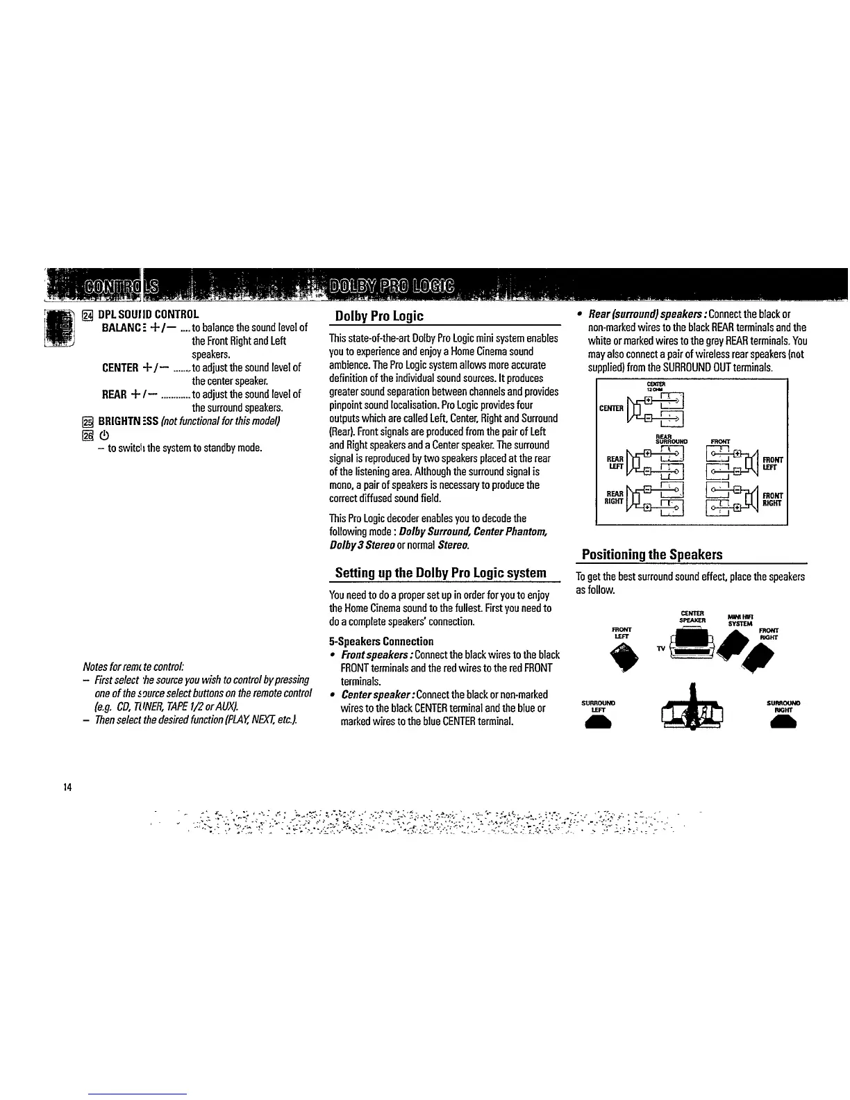 Philips FW754P - Dolby Pro Logic System Setup; Dolby Pro Logic Sound Control; Dolby Pro Logic Overview; Speaker Connection Guide