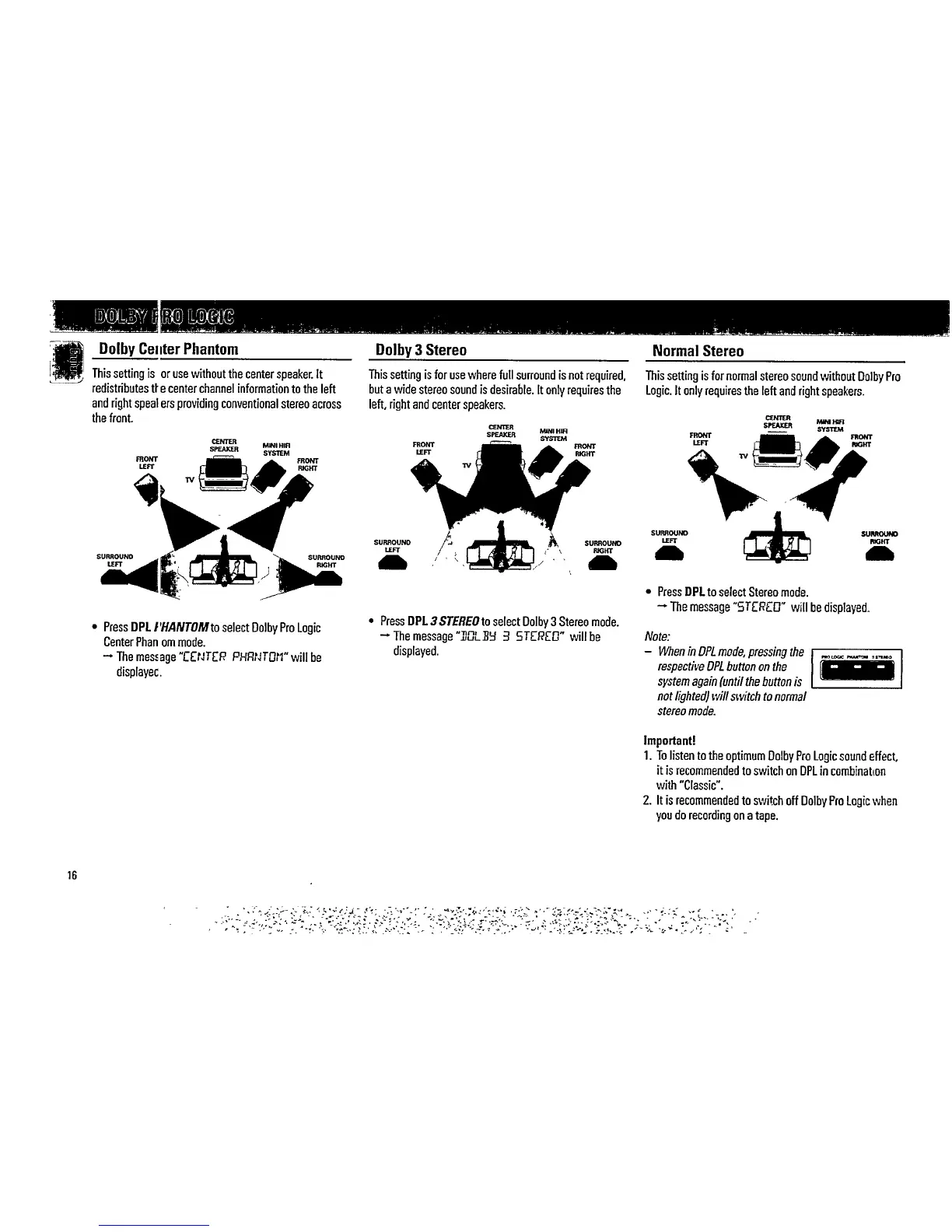 Philips FW754P - Dolby Pro Logic System Setup; Dolby Pro Logic Sound Modes; Important Sound Mode Recommendations