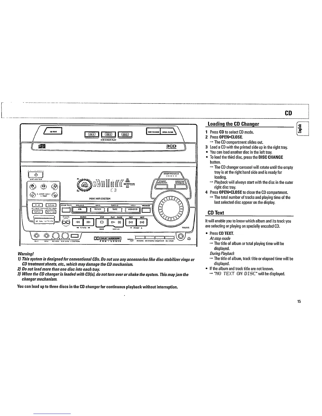 Philips FW860P/21 - Loading the CD Changer; CD Text