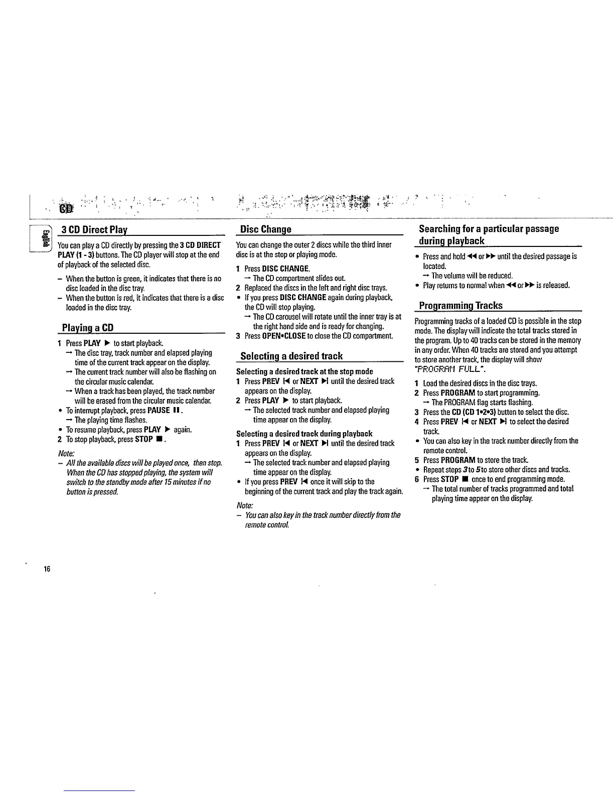Philips FW860P/21 - Playing a CD; Disc Change; Selecting a Desired Track; Programming Tracks