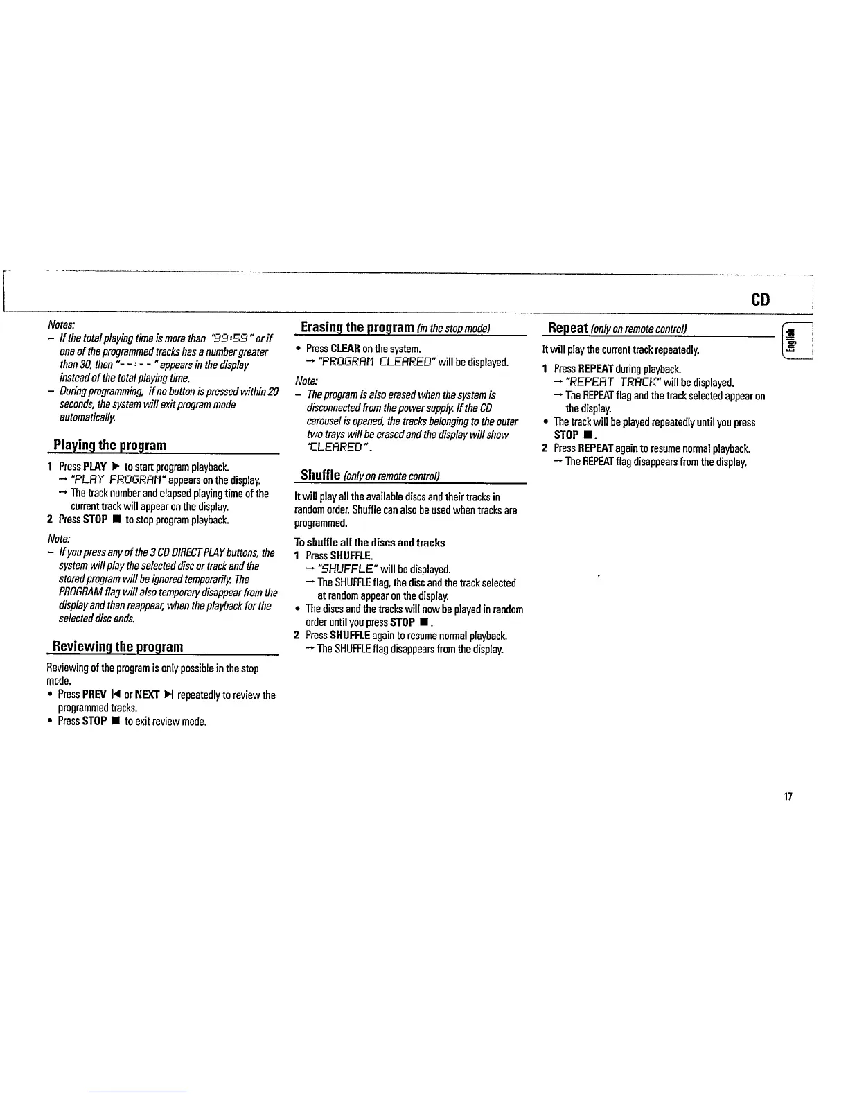 Philips FW860P/21 - Playing the Program; Reviewing the Program; Erasing the Program; Shuffle;Repeat