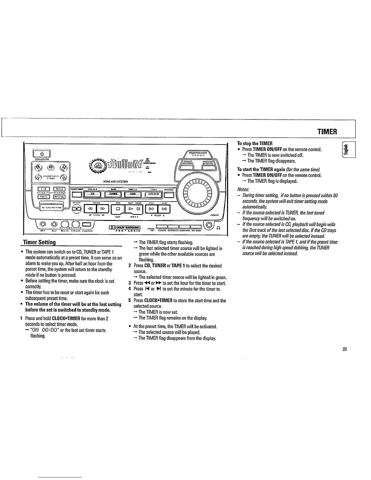 Philips FW860P/21 - Timer Setting; To Stop the Timer; To Start the Timer Again