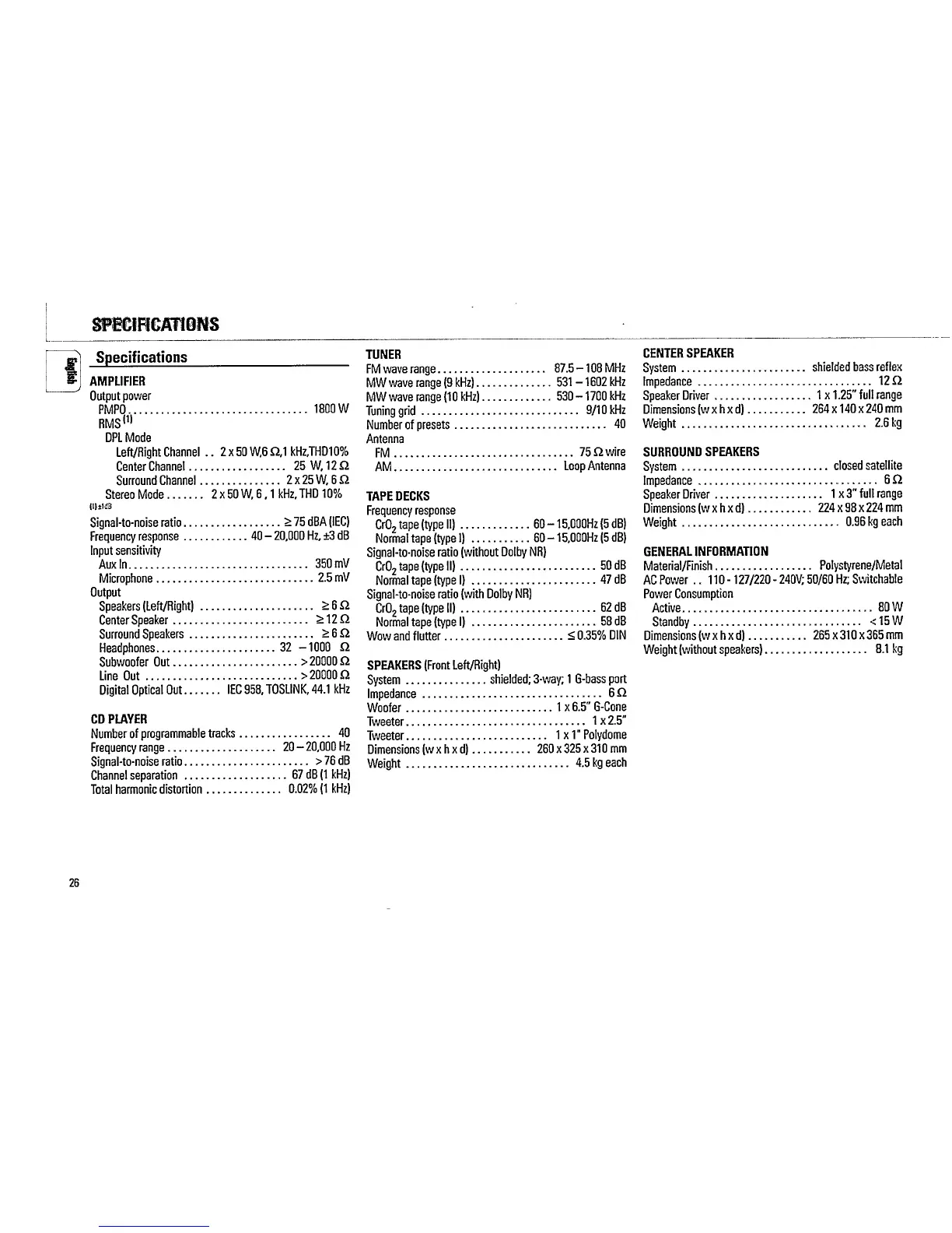 Philips FW860P/21 - Specifications