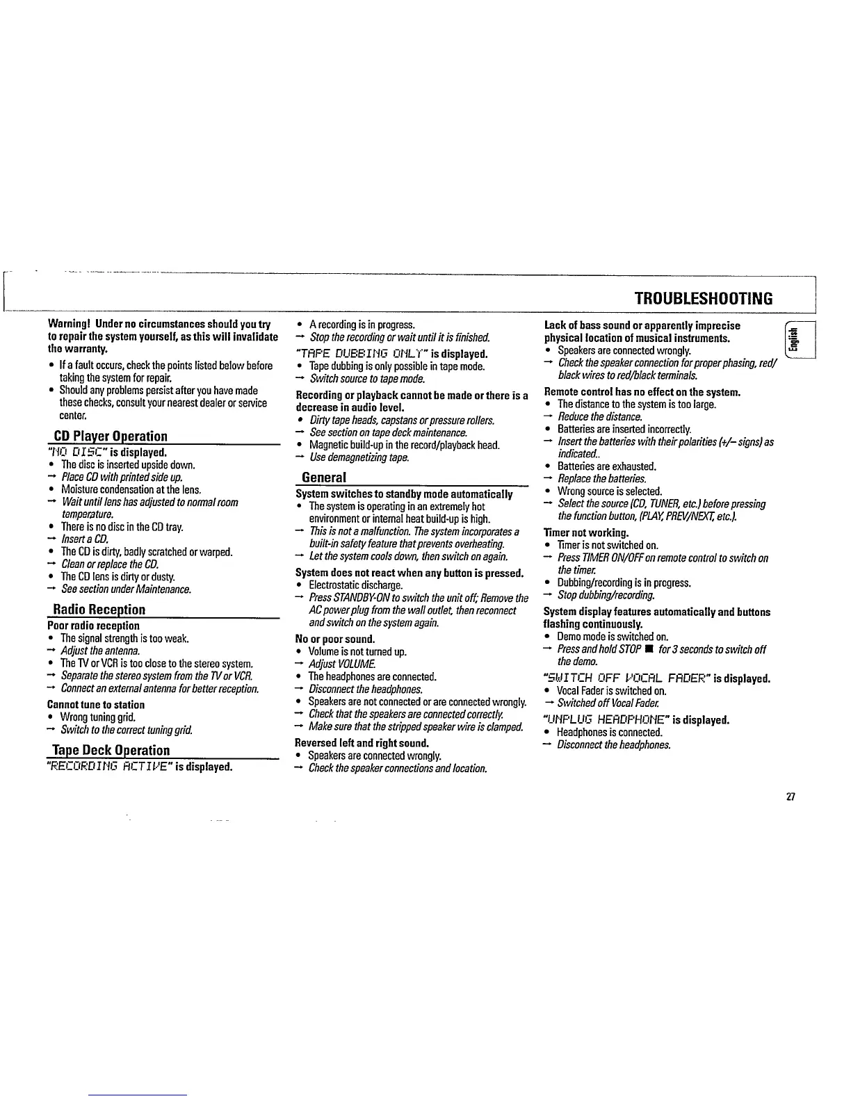 Philips FW860P/21 - Troubleshooting