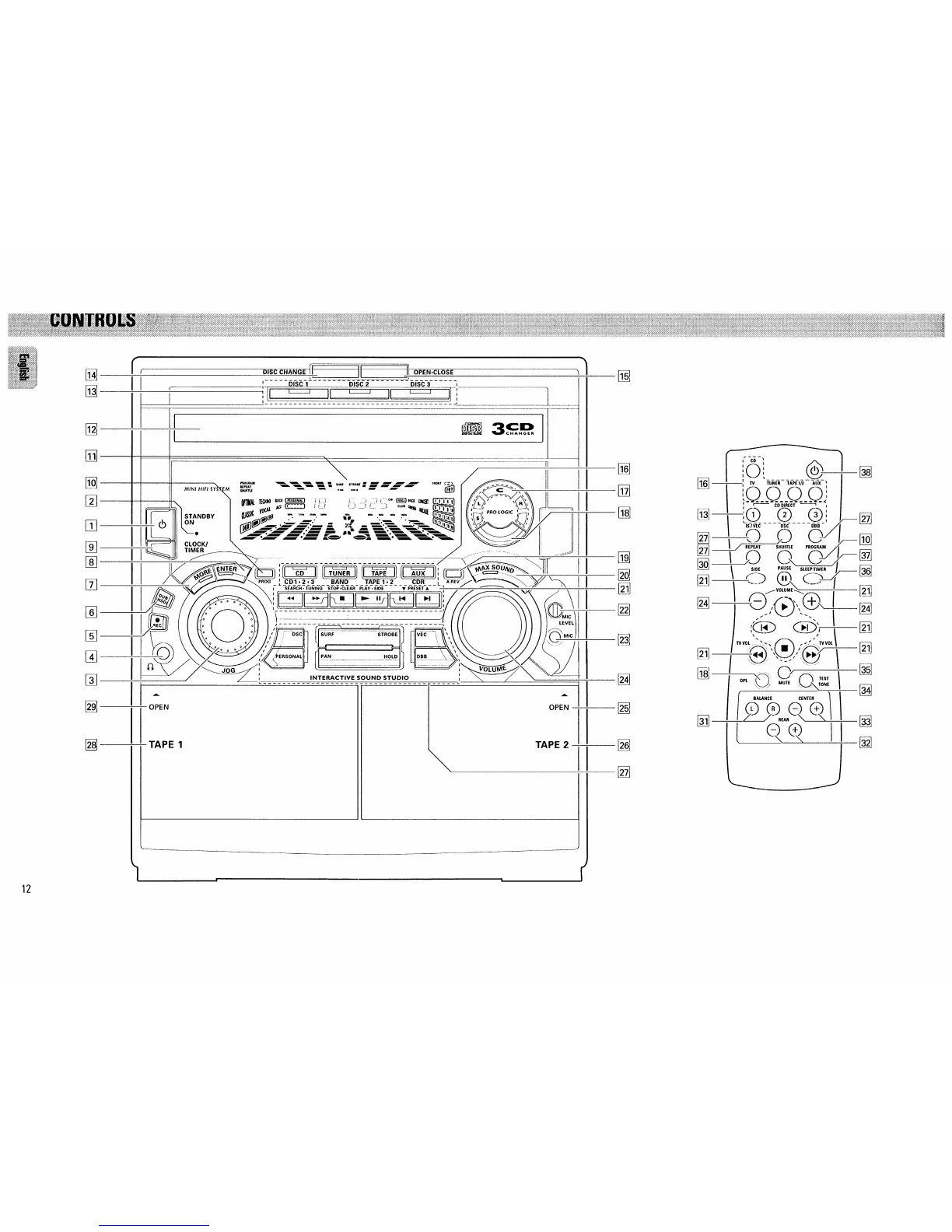 Philips FW890P - Volume, Tape Decks, and Microphone; Sound Enhancement Features; Playback, Timer, and Mute Functions