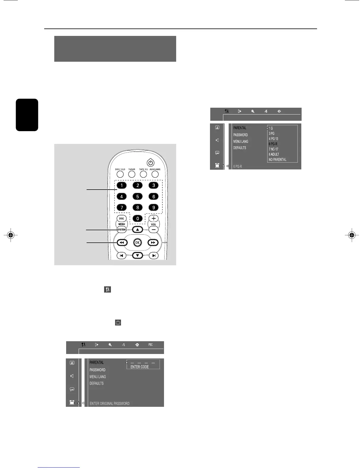 ➜ Desplazarse a “PARENTAL” y pulse¡.