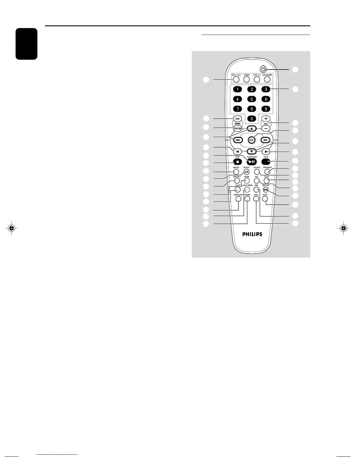 remote control (DISC or TUNER, for example).
