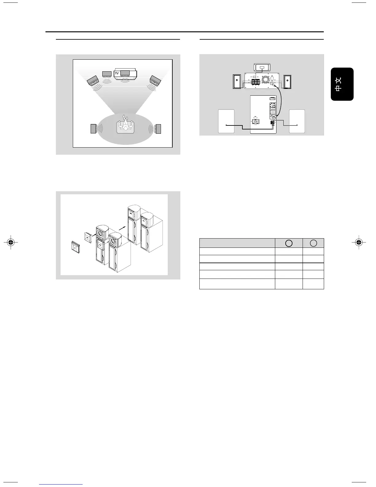 ● 把左前置和右前置揚聲器,擺放在與電視機距離相