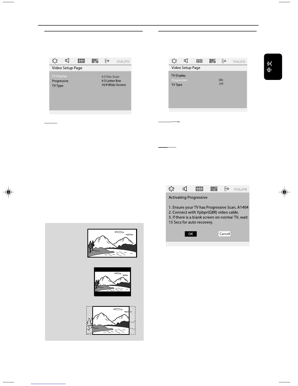 Philips FWD876 - 設定電視形狀; 使用逐行掃描視訊輸出設定提升影像品質
