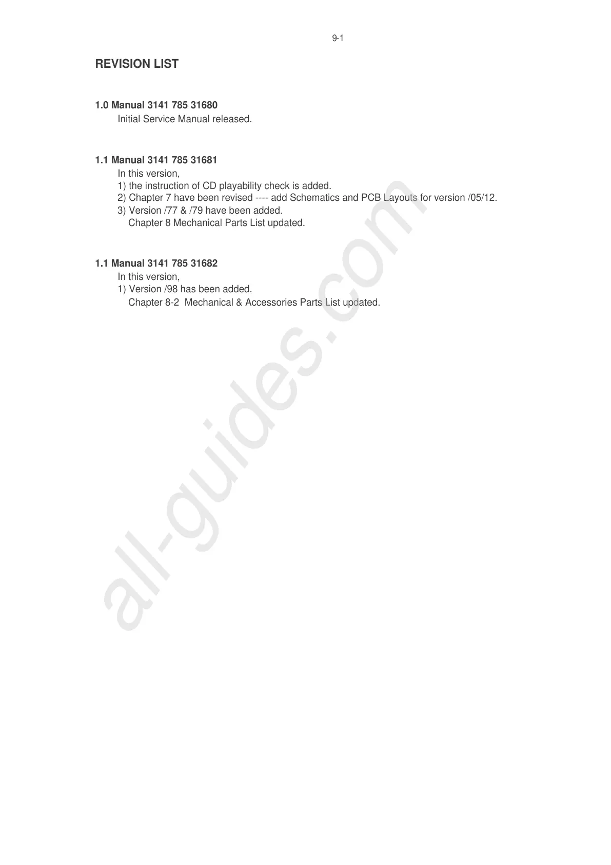 Chapter 8-2 Mechanical & Accessories Parts List updated.