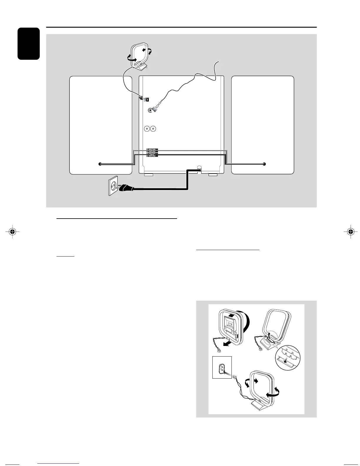 Connect the supplied MW loop antenna and FM