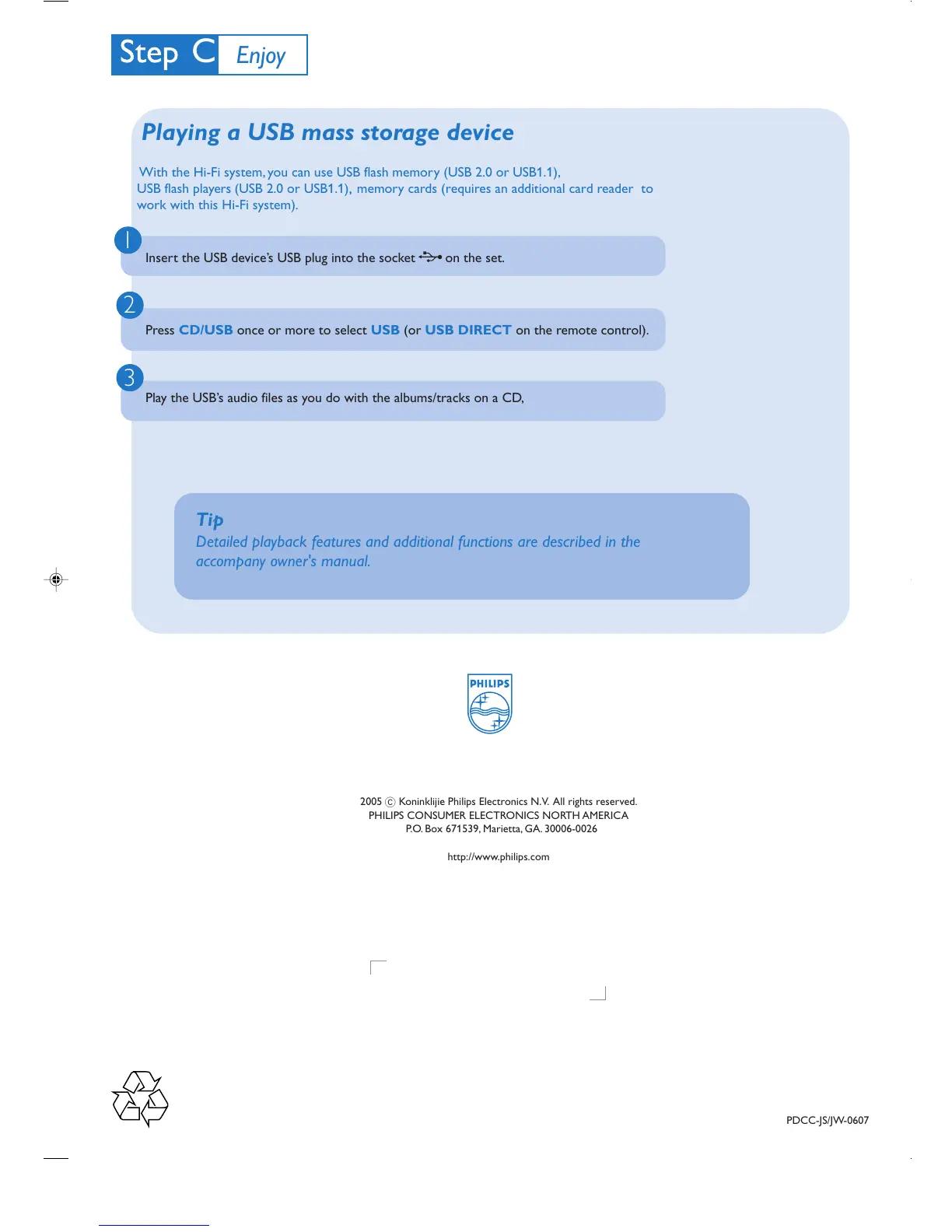 Play the USB’s audio files as you do with the albums/tracks on a CD,
