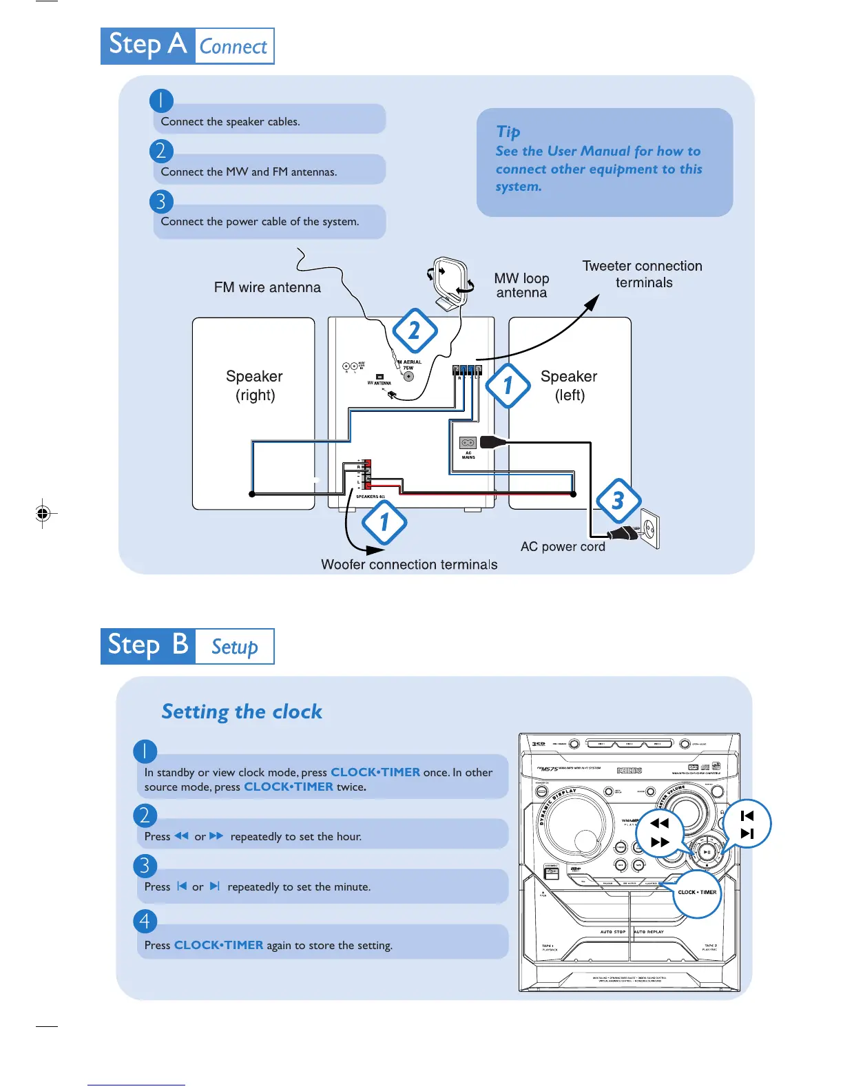 Connect the MW and FM antennas.