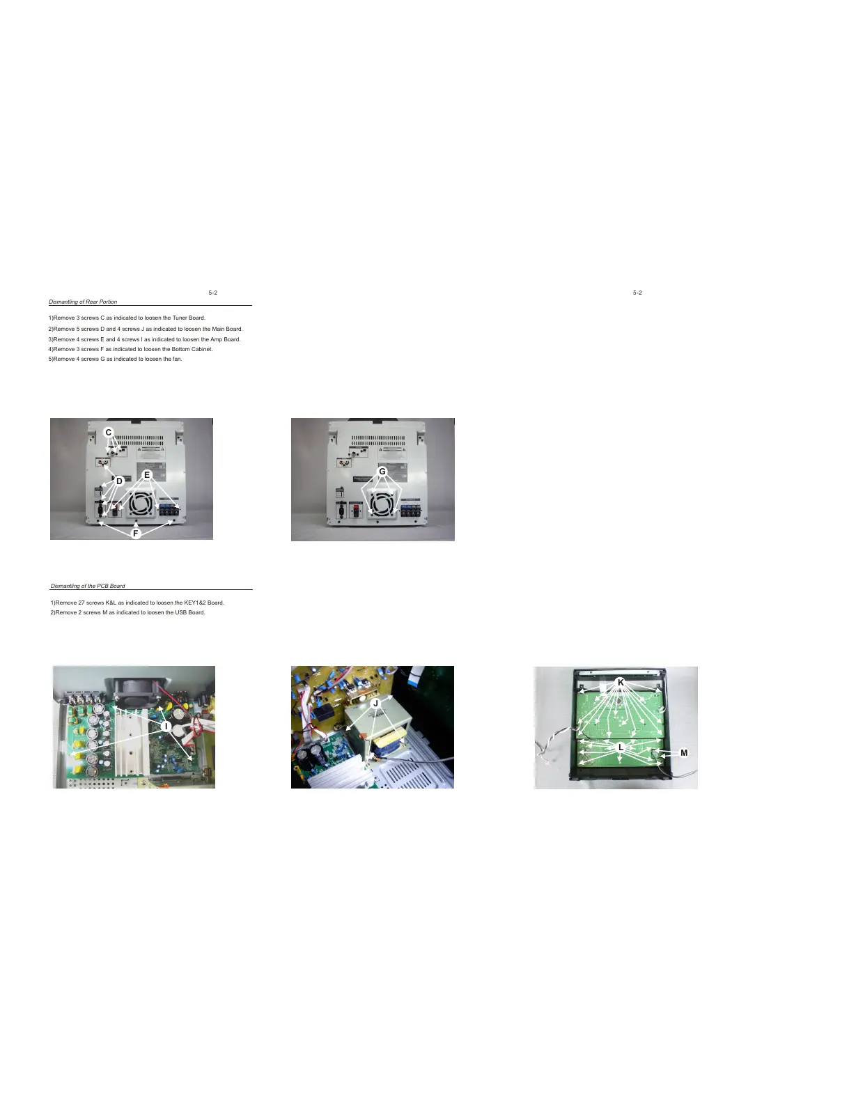 3)Remove 4 screws E and 4 screws I as indicated to loosen the Amp Board.