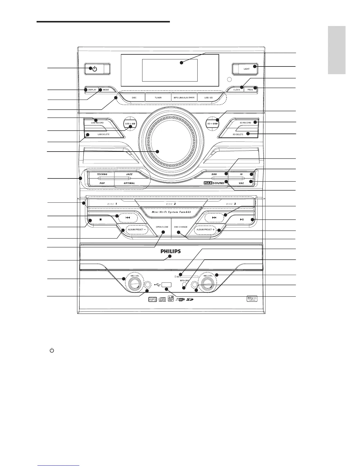Philips FWM663/55 - Unit Controls and Interfaces; Main Unit Controls