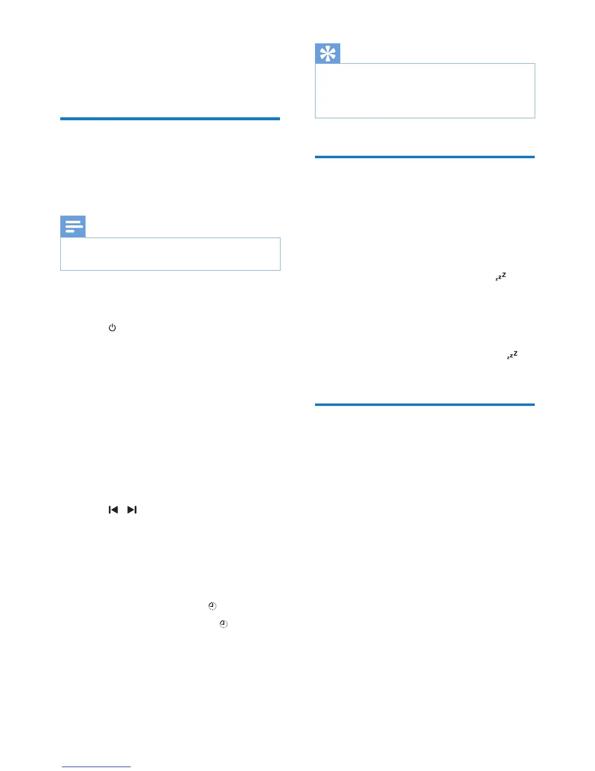 1 In standby mode, press SLEEP/TIMER