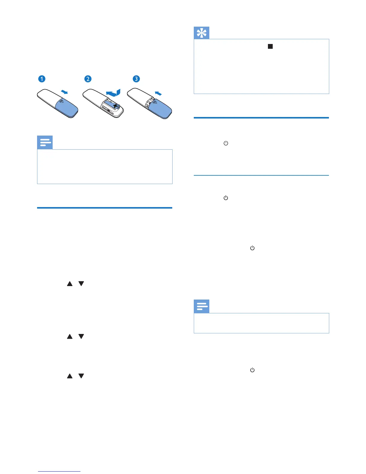 1 In standby mode, hold CLOCK/DISPLAY