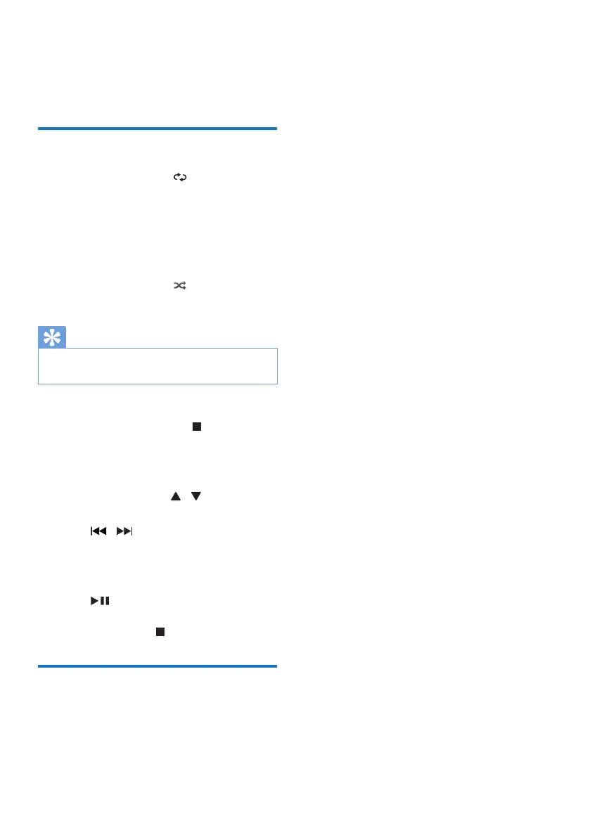 • During disc play, press to select shufe