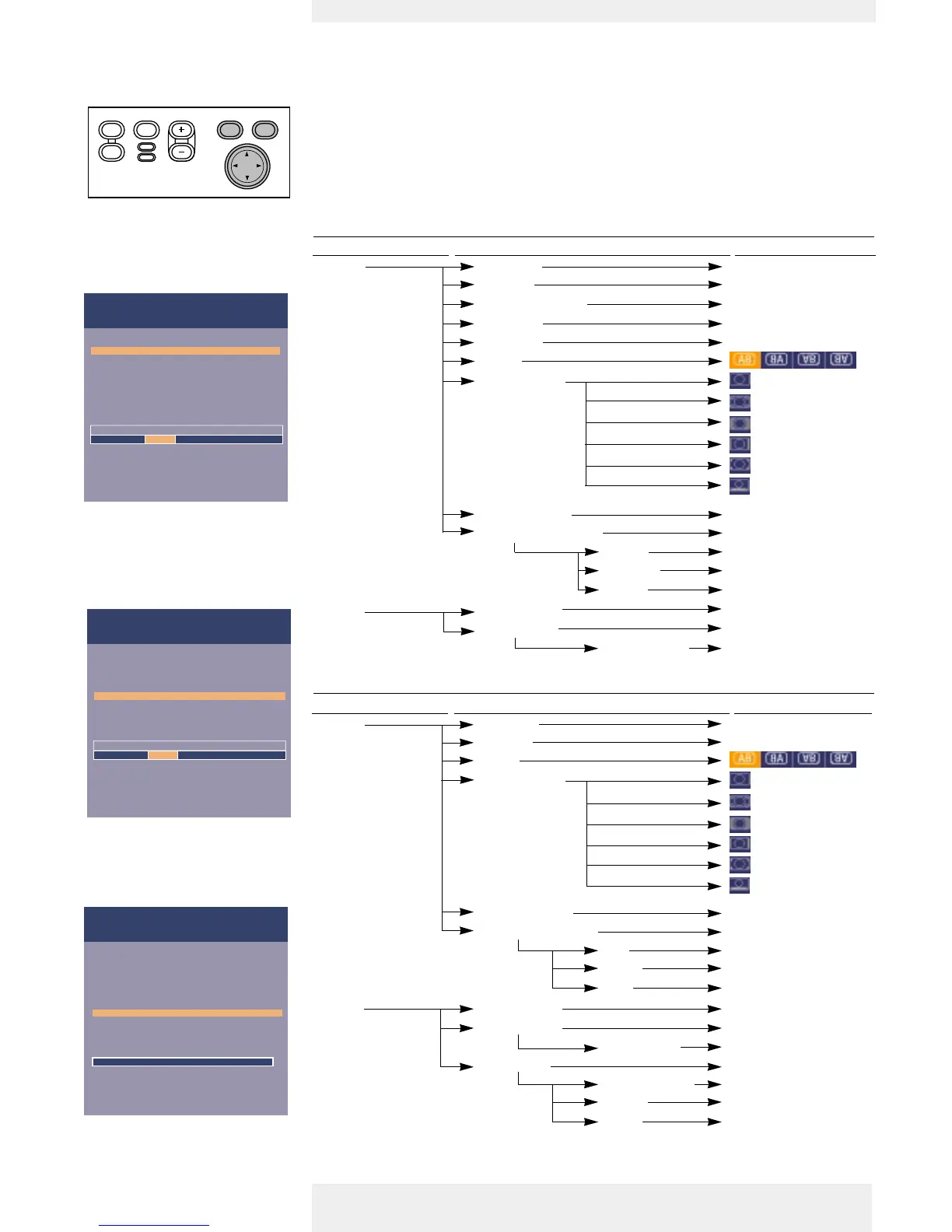 and with help of Menu, OK and Cursor Control on the projector or the remote control.