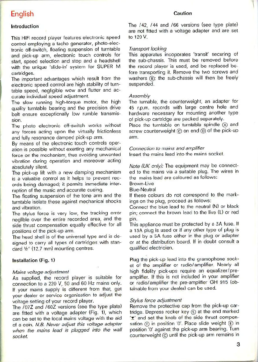 Philips GC 012 - Philips Record Player: Introduction and Setup; Record Player Features and Introduction; Installation and Connection Guide; Transport Locking and Assembly