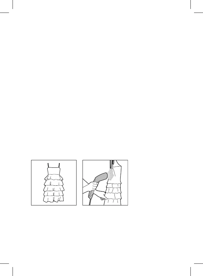 distanza da vestiti con balze o lustrini. Utilizzare il vapore solo per