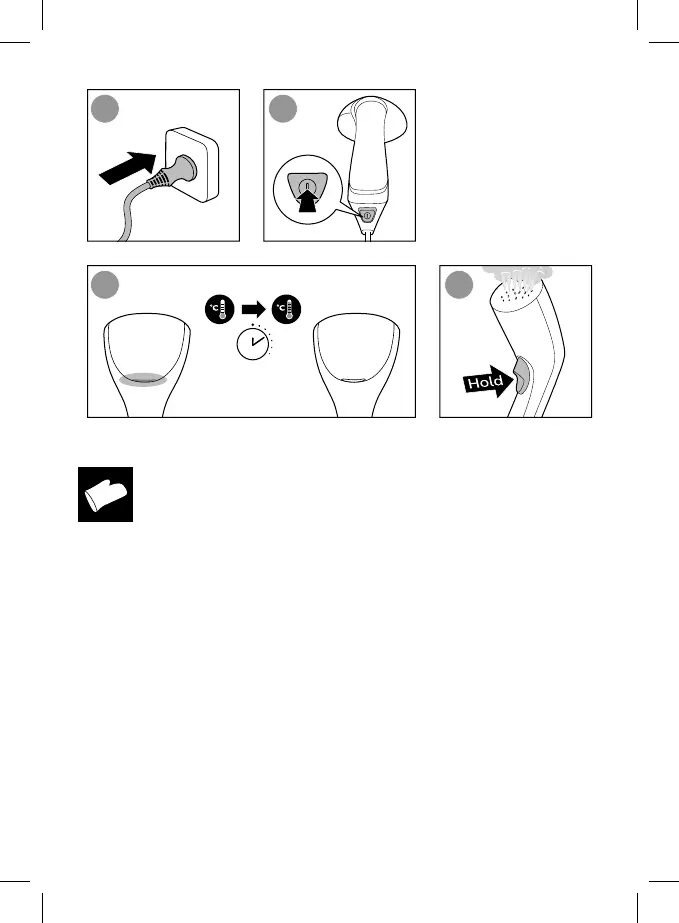 Handsken skyddar din hand mot ångan.