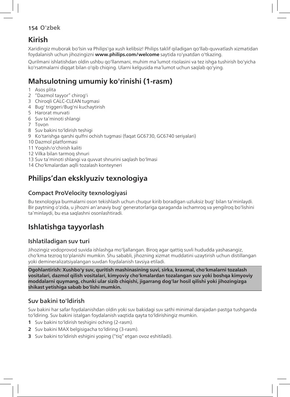 yoki demineralizatsiyalangan suvdan foydalanish tavsiya etiladi.