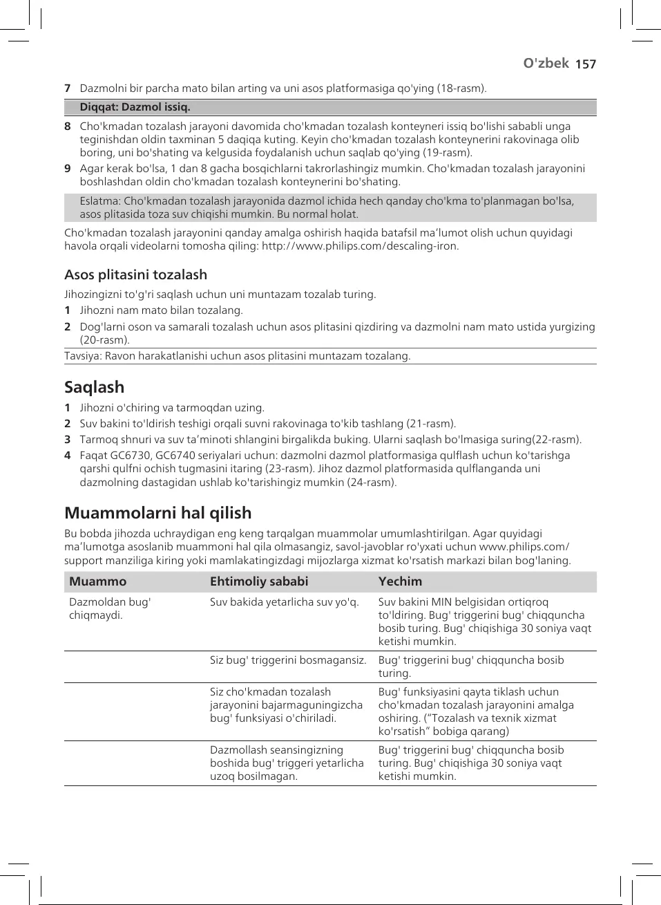 havola orqali videolarni tomosha qiling: http://www.philips.com/descaling-iron.