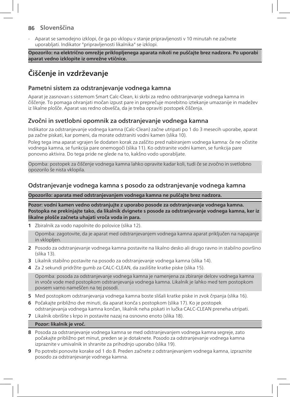 posodo za odstranjevanje vodnega kamna.