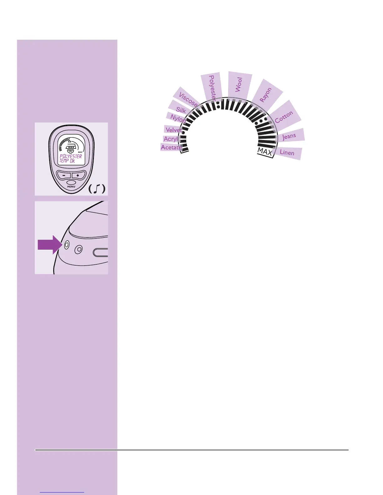 - Če tkanina vsebuje različne vrste vlaken, vedno izberite temperaturo,