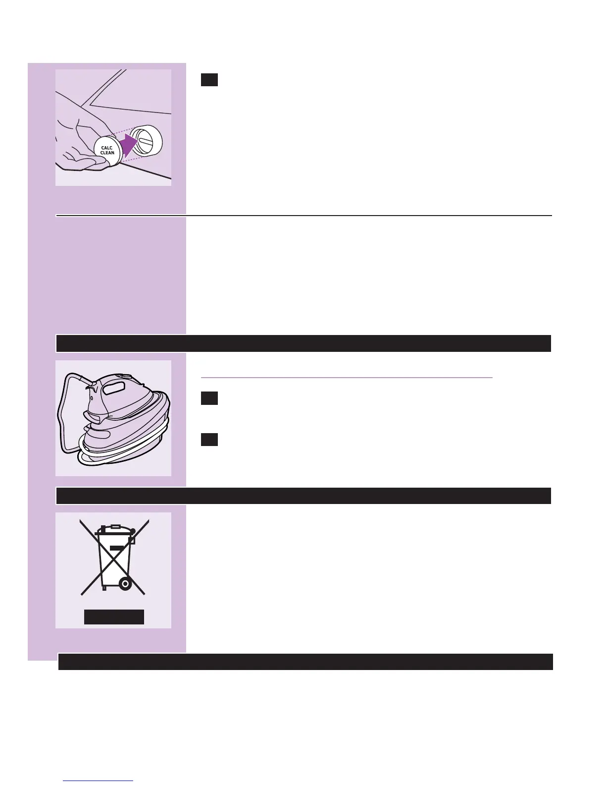 "SWITCH IRON OFF - CALC-CLEAN STEAM TANK" ("Izključite