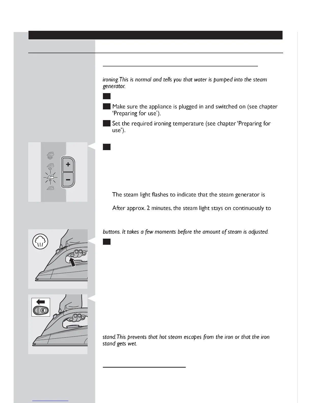 Note: During ironing, you can adjust the steam setting with the + and - steam