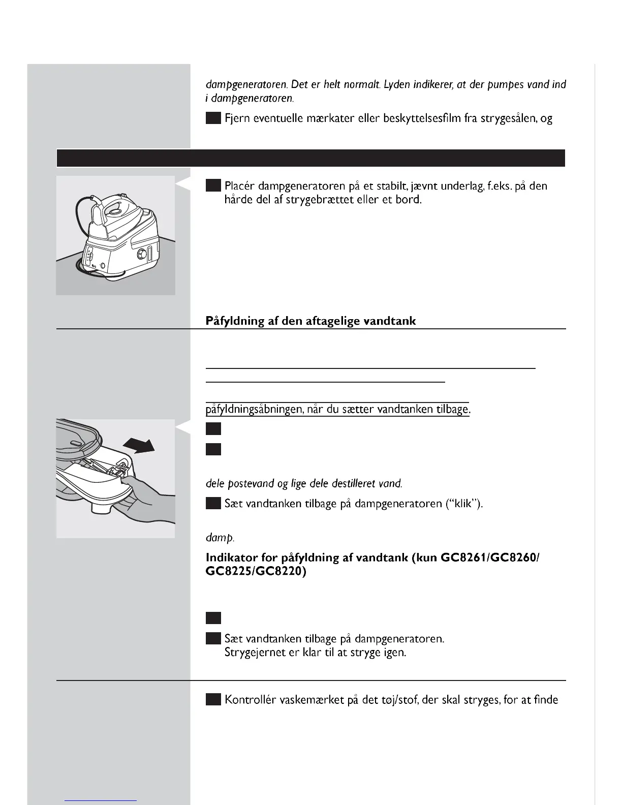 Bemærk: Hvis vandtanken ikke er isat korrekt, kan strygejernet ikke producere