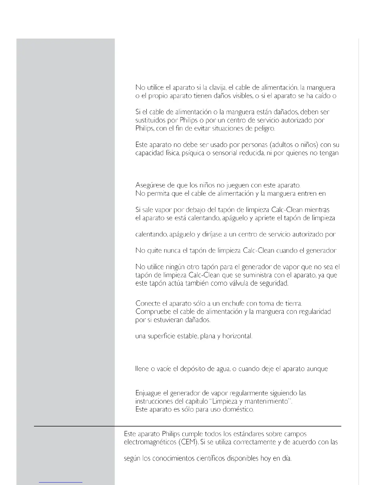 No sumerja nunca la plancha ni el generador de vapor en agua.