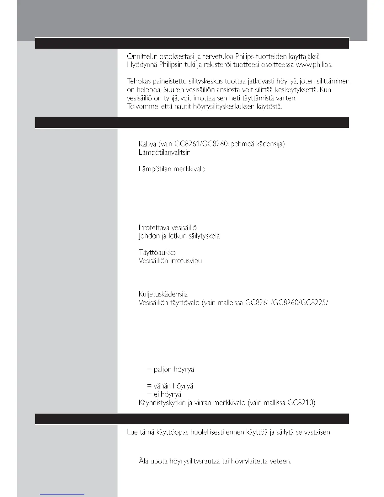 V Höyrypainikkeet (+/-) (vain malleissa GC8261/GC8260/GC8225/
