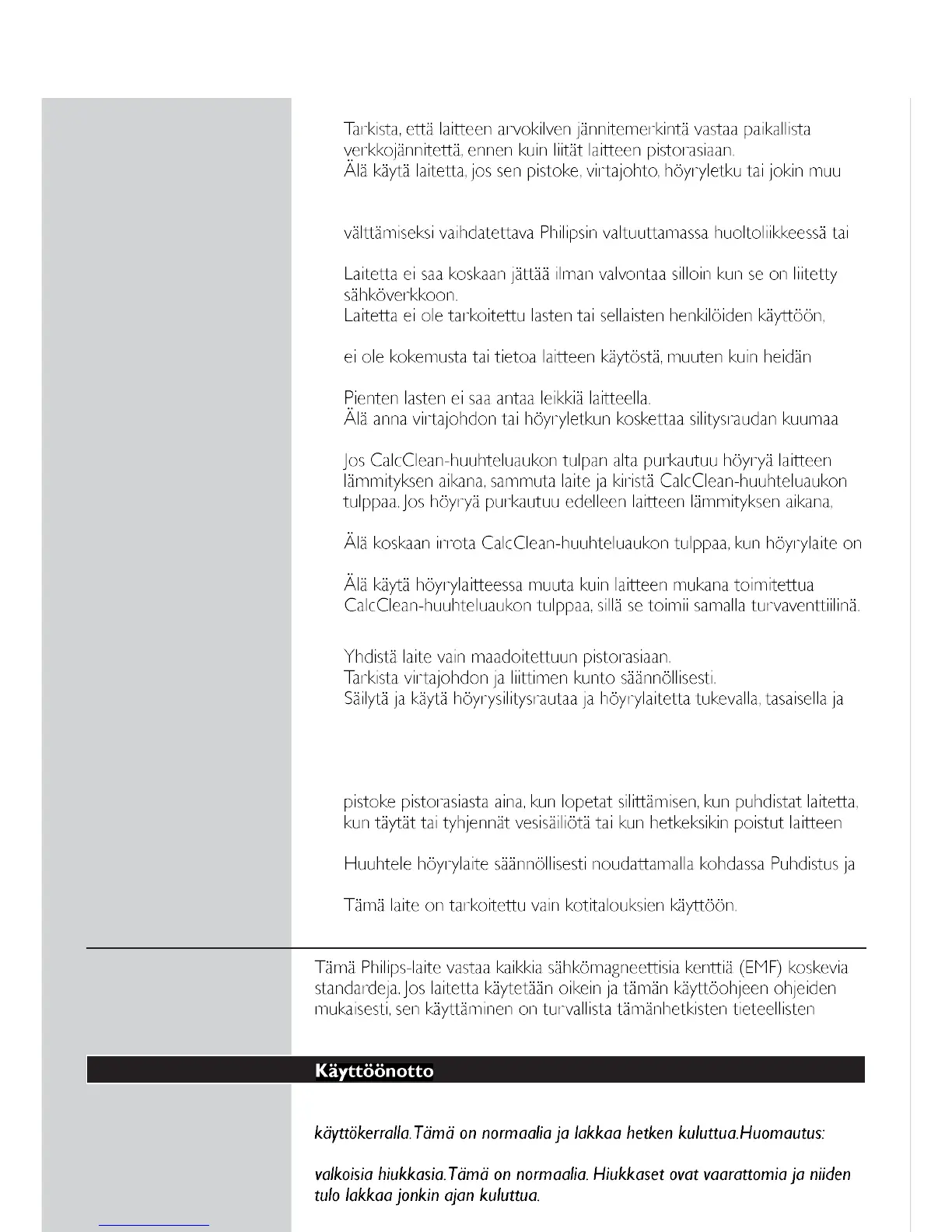 Huomautus: Höyrysilitysraudasta voi tulla hieman käryä ensimmäisellä
