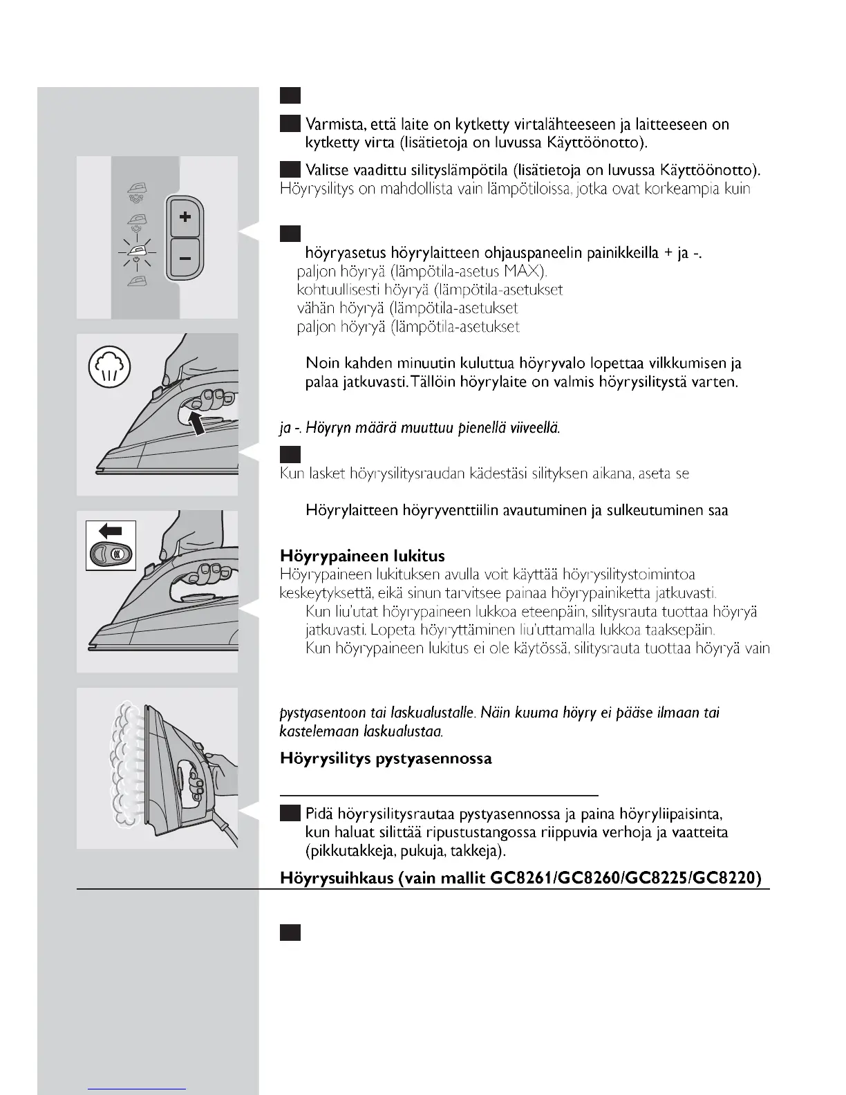 Huomautus: Höyryasetusta voi säätää silittämisen aikana höyrypainikkeilla +