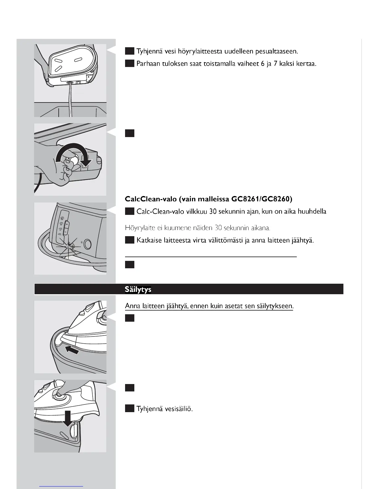 Älä käytä Calc-Clean-toimintoa, kun höyrylaite on kuuma.